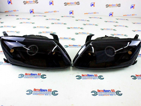Передние тюнинг фары Лада Гранта с Би линзой тонированные с ангельскими глазками